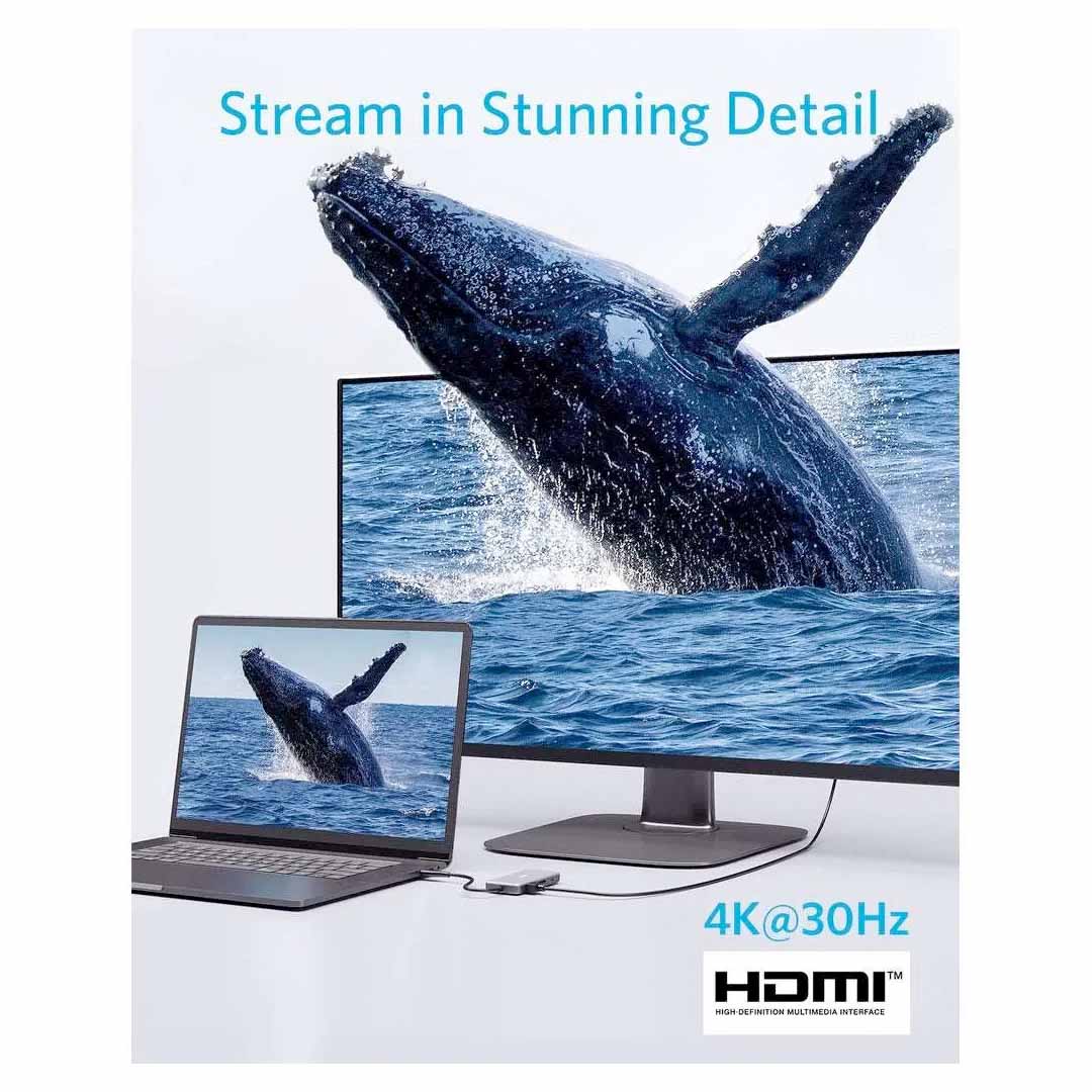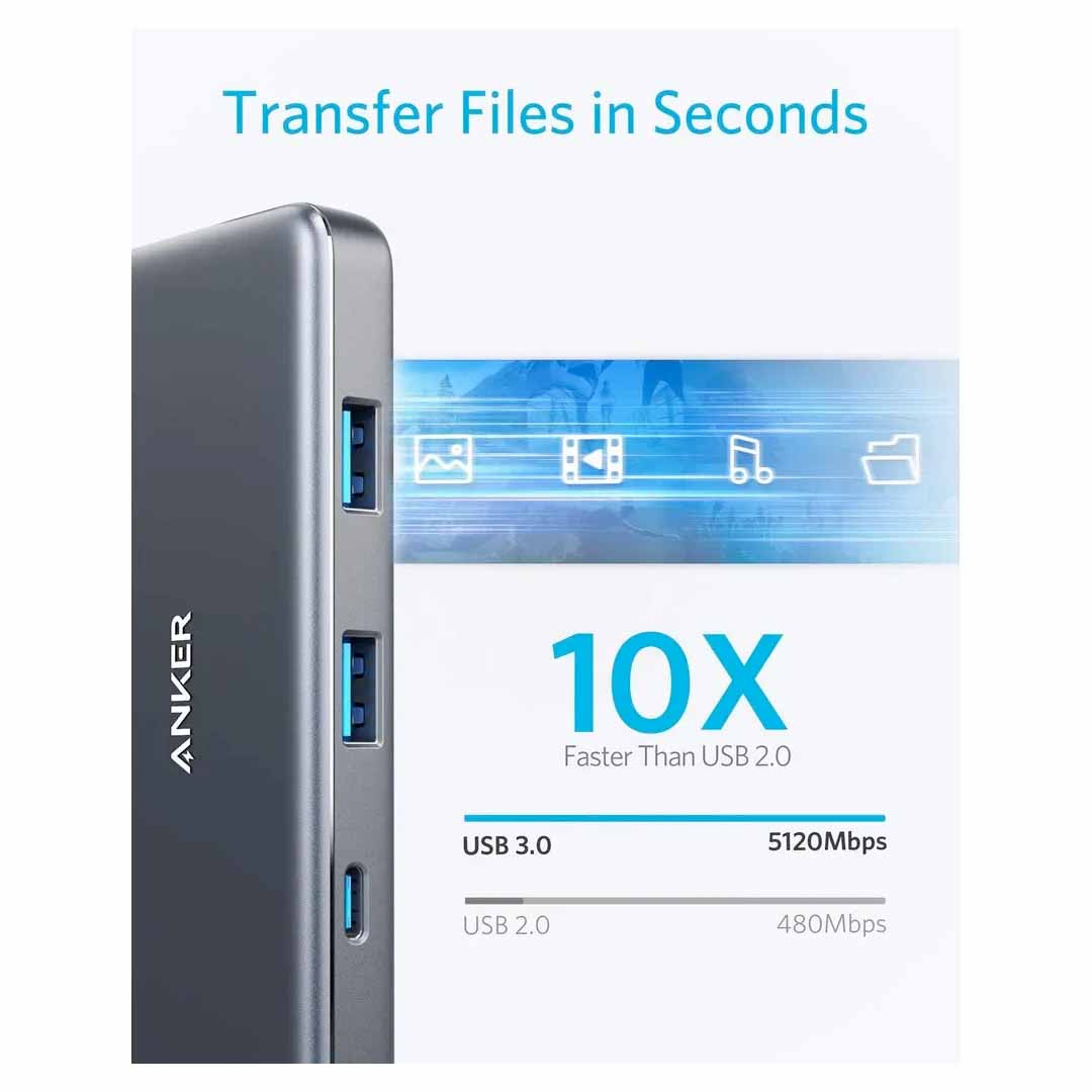 ✔️High-Speed, High-Def: USB-C and USB-A data ports provide file transfer at speeds up to 5 Gbps, while an HDMI port supports media display at resolutions up to 4K@30Hz.