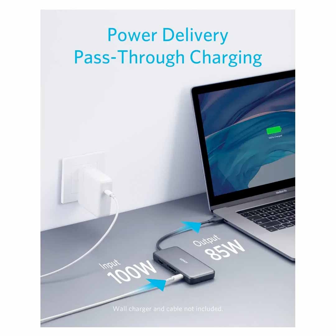 ✔️Powerful Pass-Through Charging: Compatible with USB-C Power Delivery to provide high-speed pass-through charging to your laptop at up to 85W —all while accessing the hub’s other functions. (Charger not included).