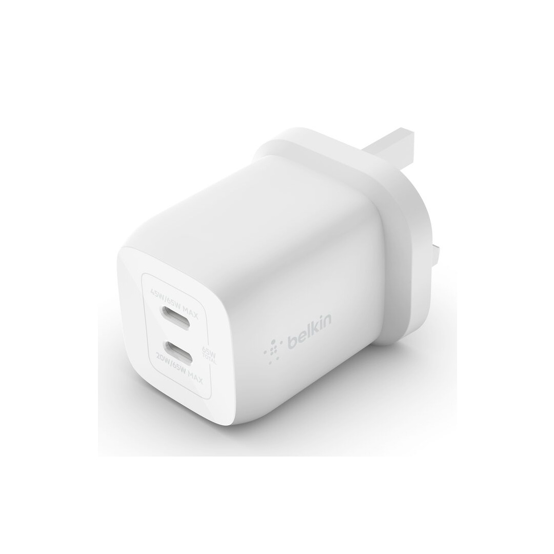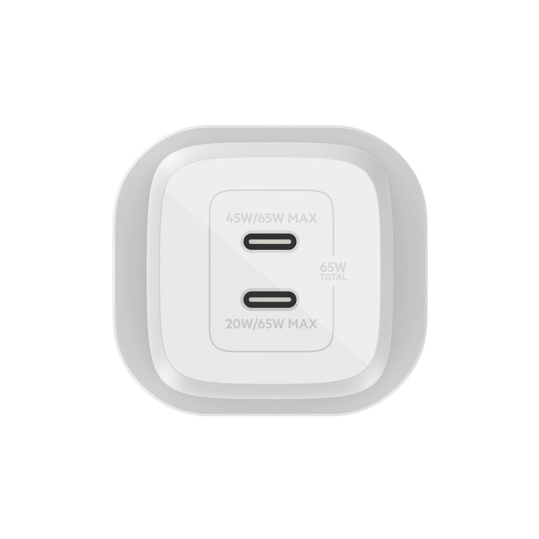 Access up to 65W of power to charge a MacBook Pro, USB-C laptop, or other high consumption device when one USB-C port is in use When both USB-C ports are in use, fast charge 2 devices with up to 45W from the top port and up to 20W from the bottom port.