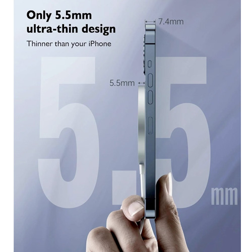 - 15W inductive charger has an extremely compact design, 5.5 mm thick