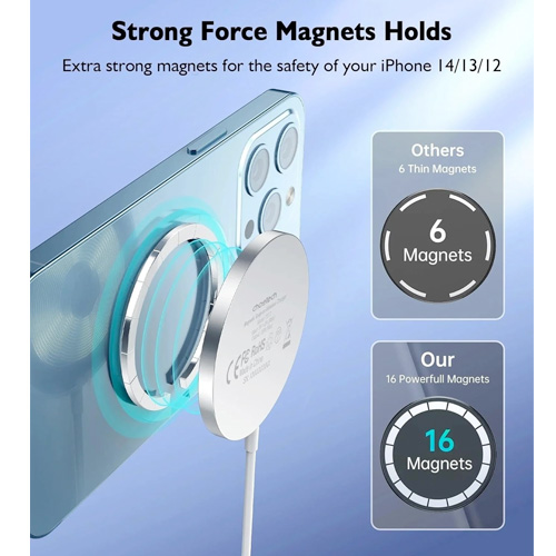 - Charger is covered with non-slip silicone, and inside it hides as many as 16 strong magnets