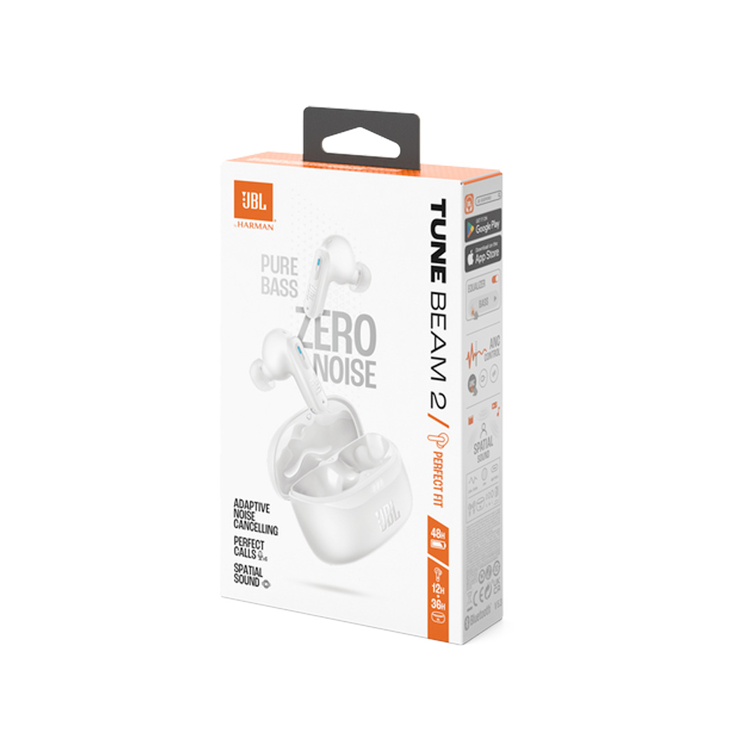 JBL Tune Beam 2 true wireless earbuds deliver up to 48 hours of exceptional JBL Pure Bass Sound and JBL Spatial Sound. Enjoy perfect-sounding calls with Adaptive Noise Cancelling and Smart Ambient technology.