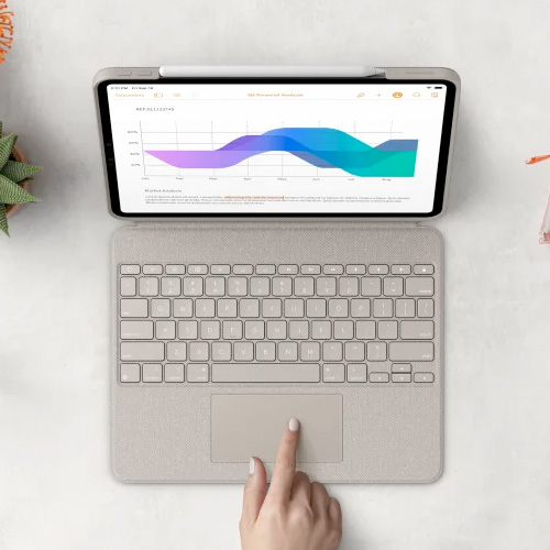 A large click-anywhere trackpad provides an intuitive tracking experience and supports all the Multi-Touch gestures you know and love like swipe, pinch, double tap and more. The slimmest Combo Touch yet, it slips into bags, travels light and powers your productivity anywhere.