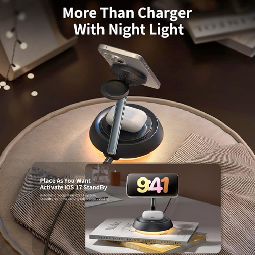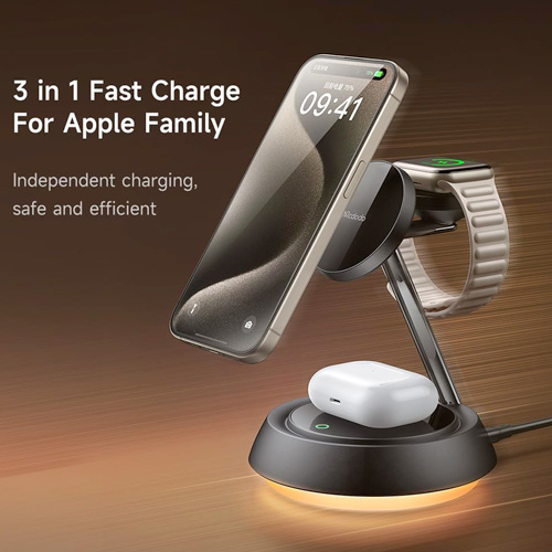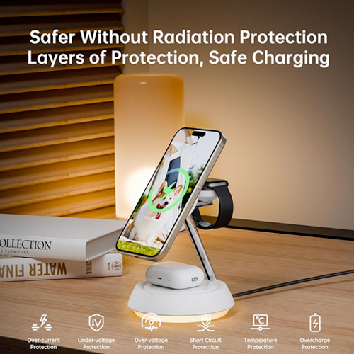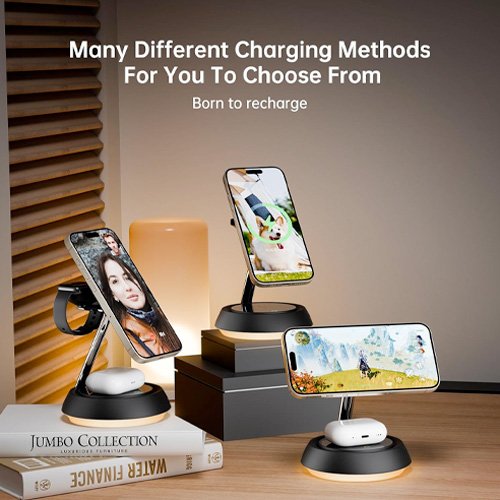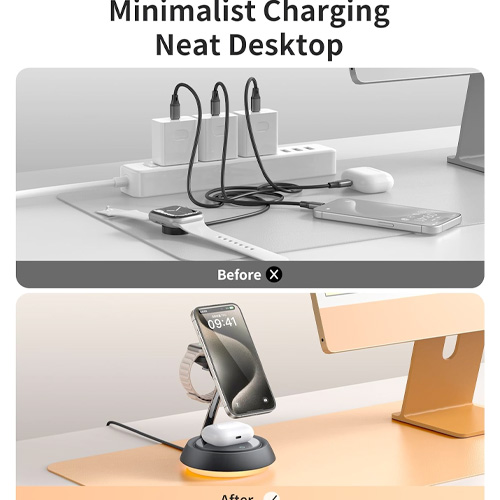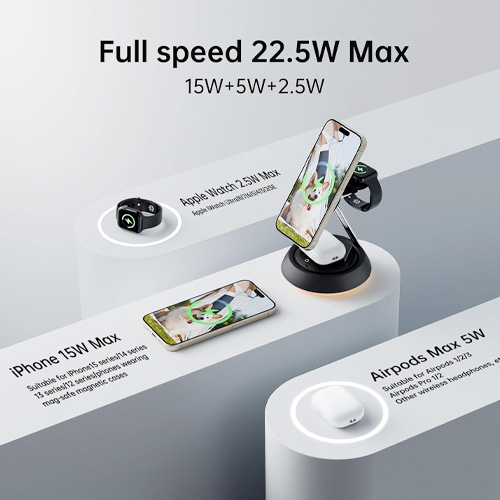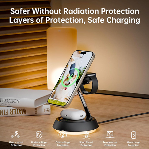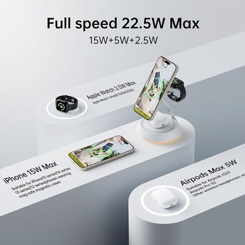 • 3 in 1 Wireless Magnetic Multi-Device Charging Station:Specially built for Apple device users, the magnetic wireless charger 3-in-1 makes fast charging of multiple devices extremely simple and neat, allowing you to charge iPhone, Apple Watch and Airpods,Three devices charge independently.Using the latest magnetic technology, you can easily and accurately align your iPhone. You can fix your iPhone in any direction according to the usage scenario,bringing you a stable wireless charging experience.